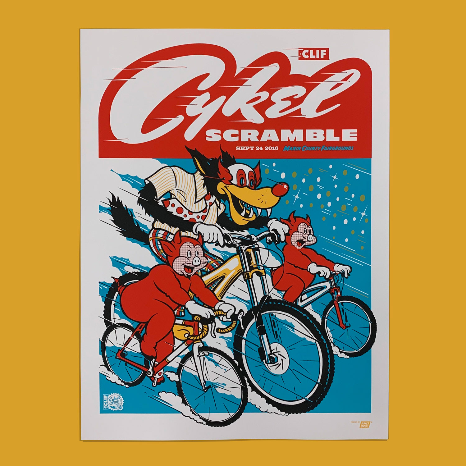 Clif Bar summoned us to create three commemorative posters for the 2016 Cykel Scramble event, a crazy half-mile bicycle relay and music festival in NoCal.