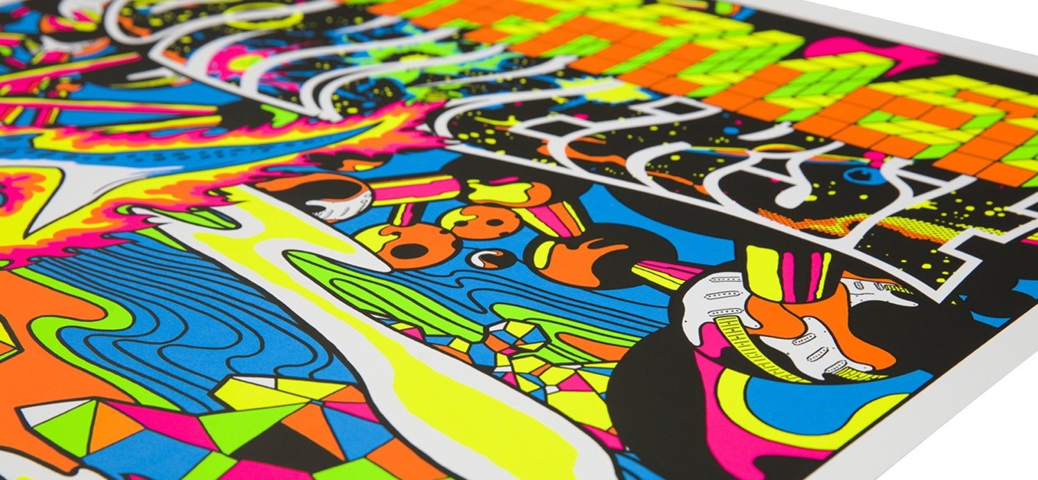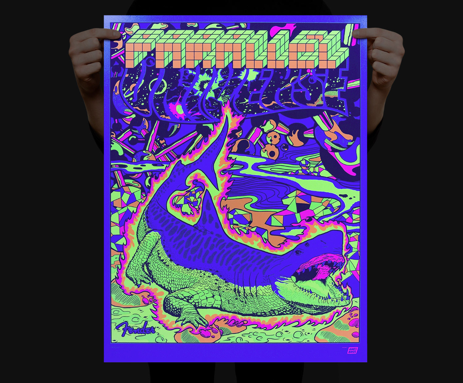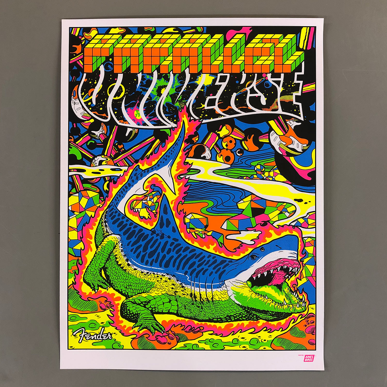 In 2018, Fender invited us to create the first, in a series of limited-edition silkscreen posters to commemorate and launch Fender's limited-edition Parallel Universe Collection of guitars. Featured here is the Strat-Tele Hybrid Guitar.