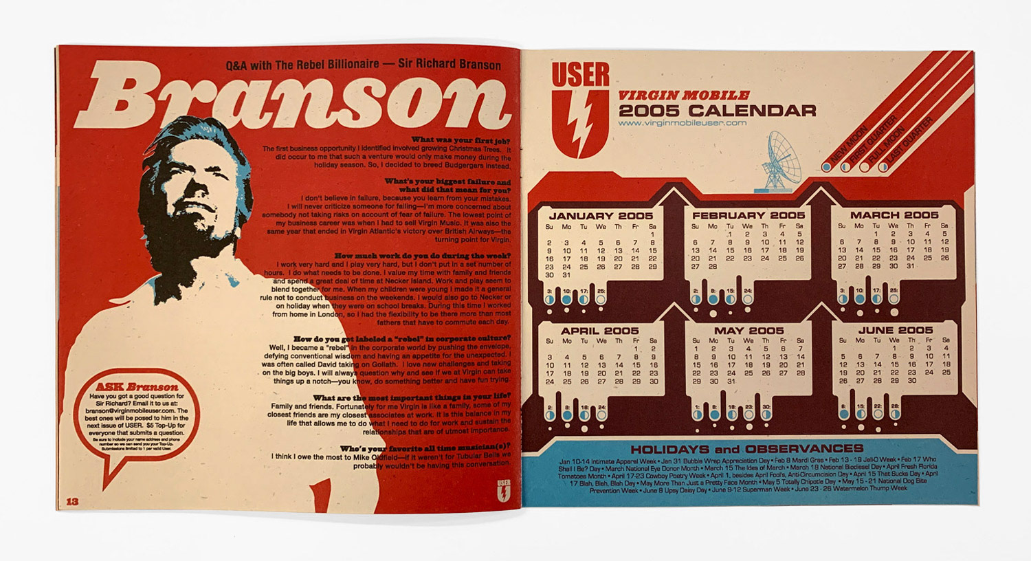 Richard Branson handed us the keys to Virgin Mobile wireless... putting us in charge of creating everything from festival logos and phone graphics to subscriber newsletters.