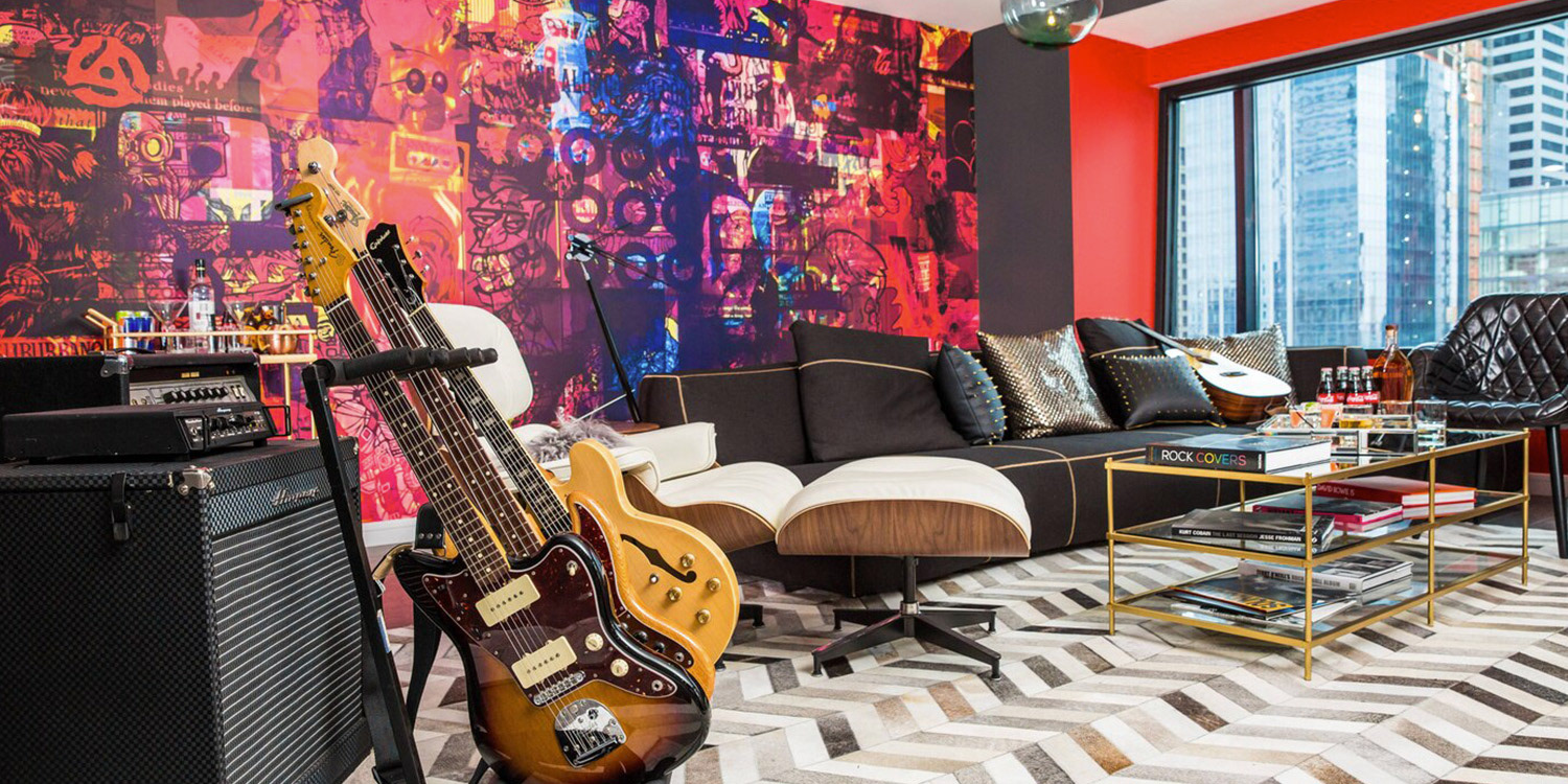W Hotels introduced the first W Sound Suite in North America here in Seattle - a private recording studio and creative space for artists, complete with a separate vocal room, state-of-the-art mixing equipment, and rock-n-roll décor by Ames Bros.
